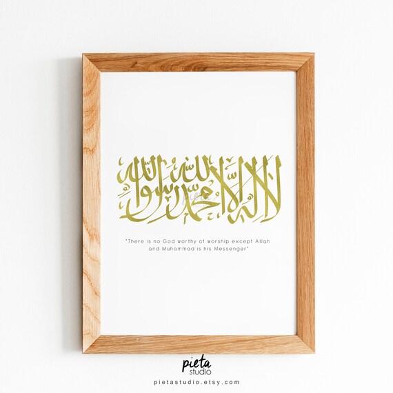 La Ilaha Illallah Arabic Calligraphy With Words In Gold Foil Etsy