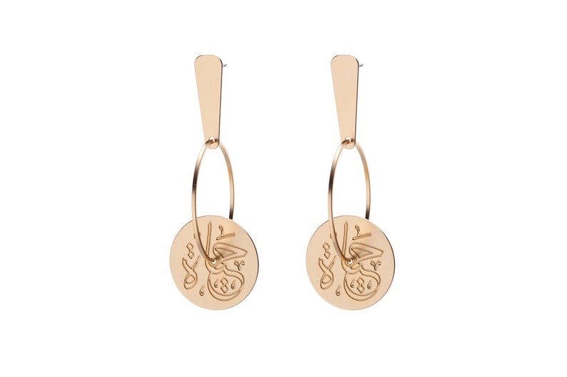 Arabic Calligraphy Jewelry Gold Statement Earrings Gold Etsy