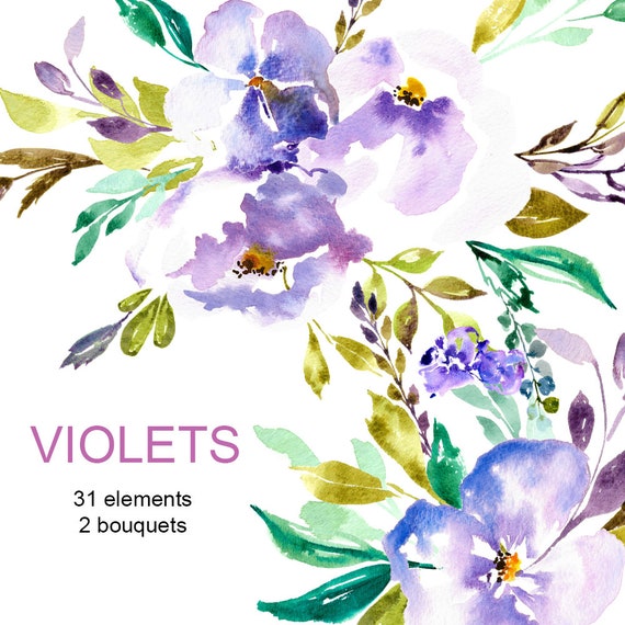 Violettes Clipart Aquarelle Fleur Fleur Mauve Clipart Etsy